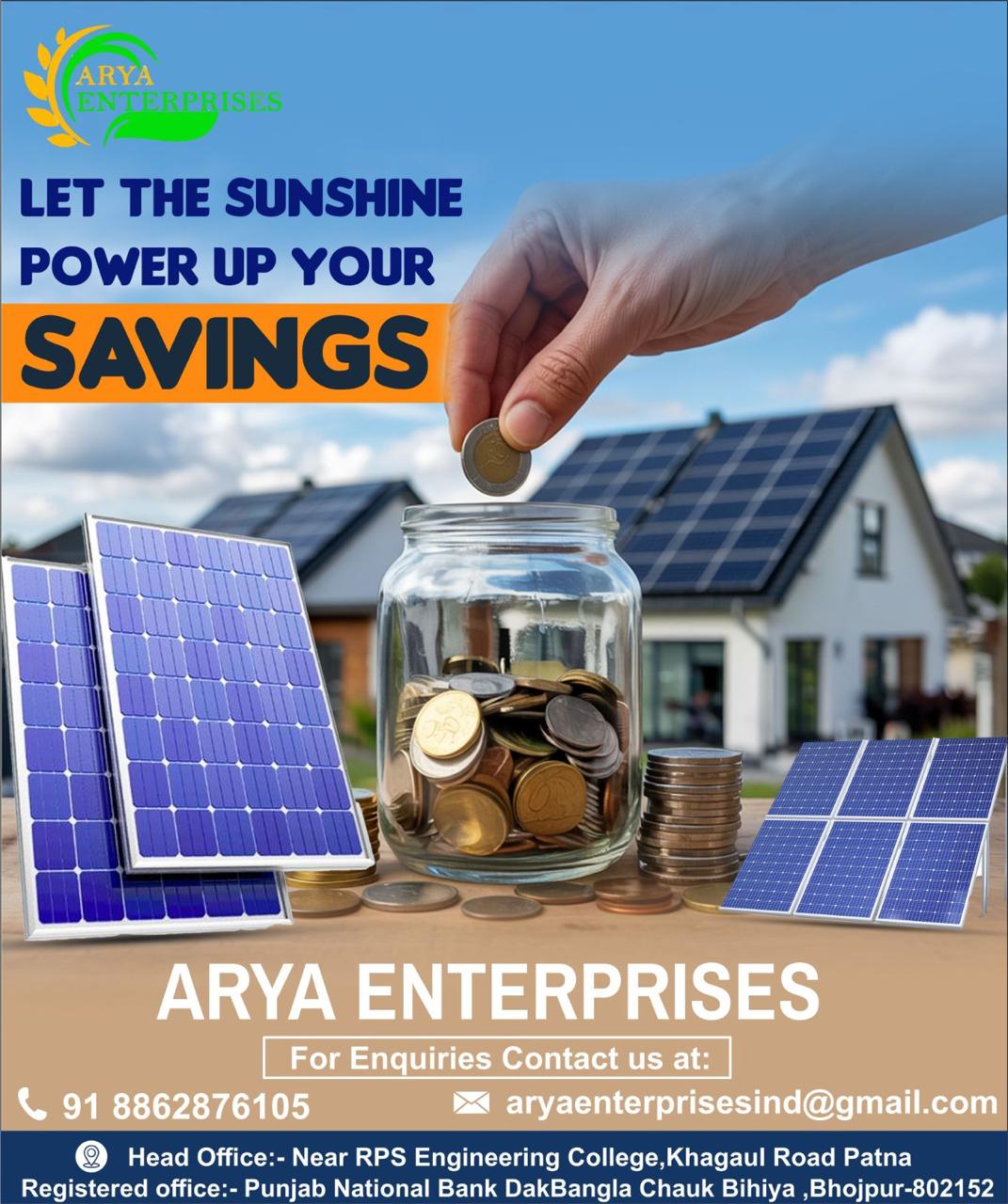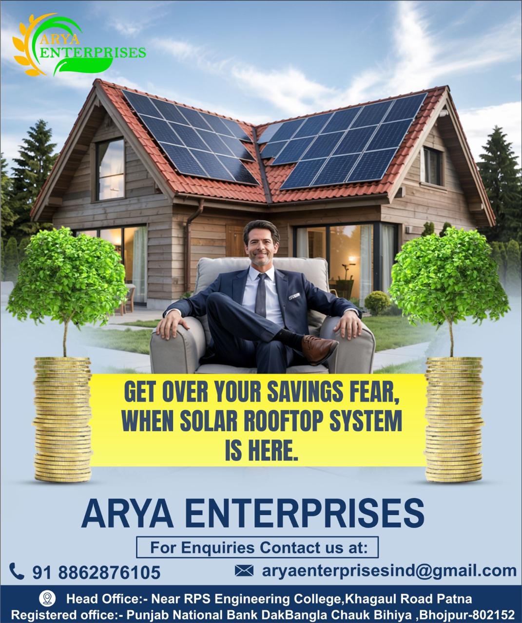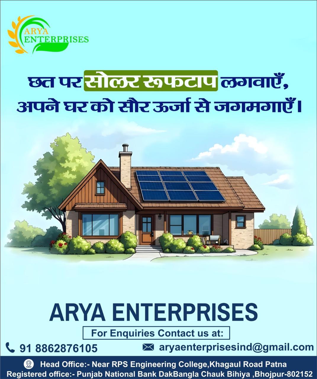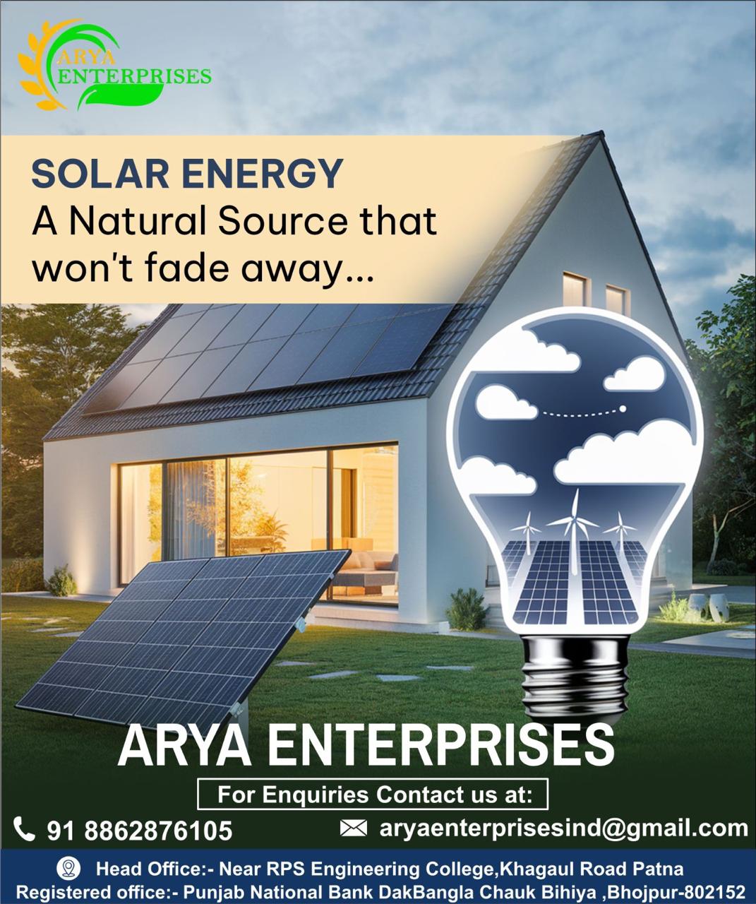 Contact ARYA ENTERPRISES today for a free consultation and take the first step towards energy independence and sustainability.