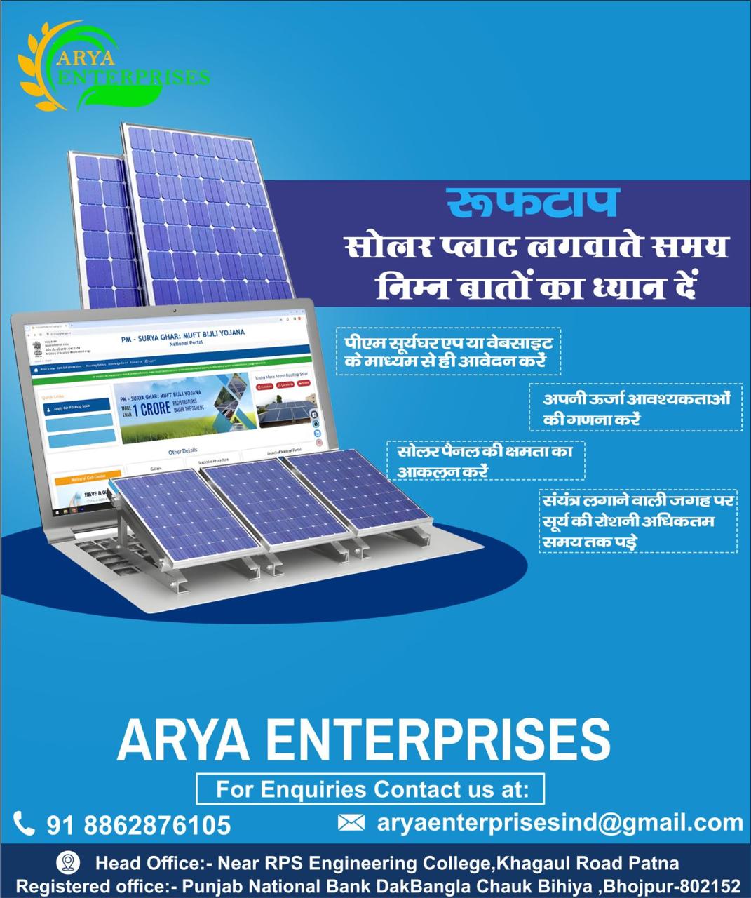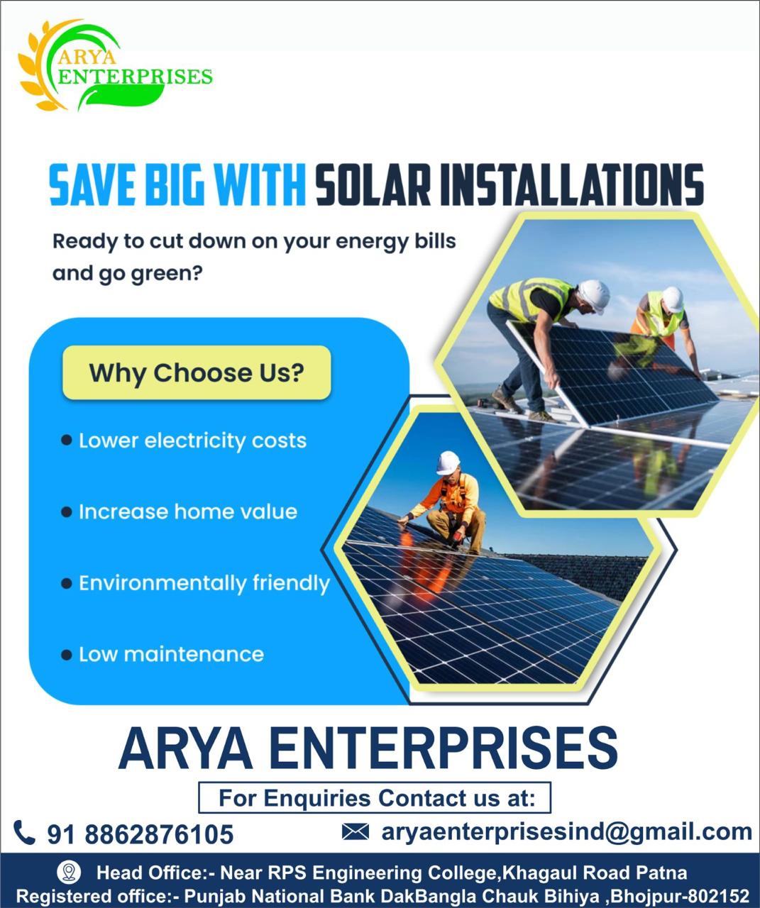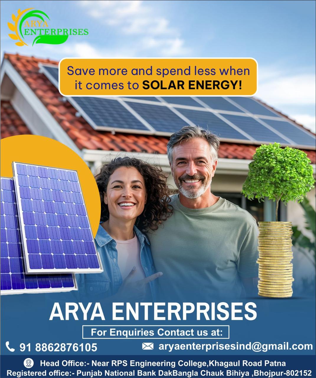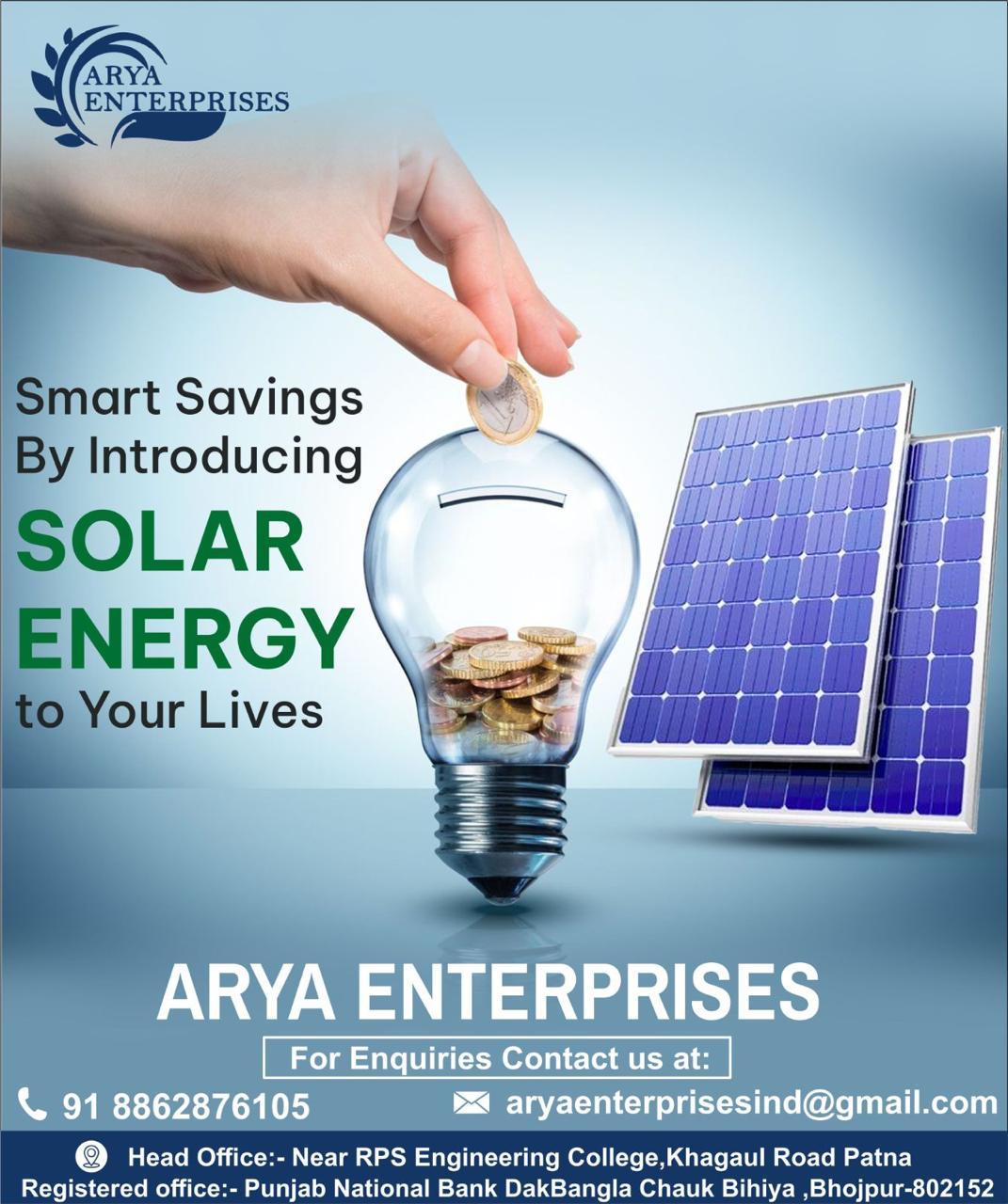 Contact ARYA ENTERPRISES today for a free consultation and take the first step towards energy independence and sustainability.