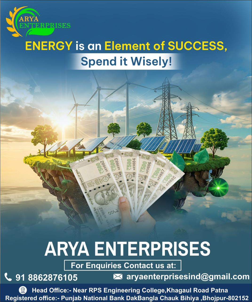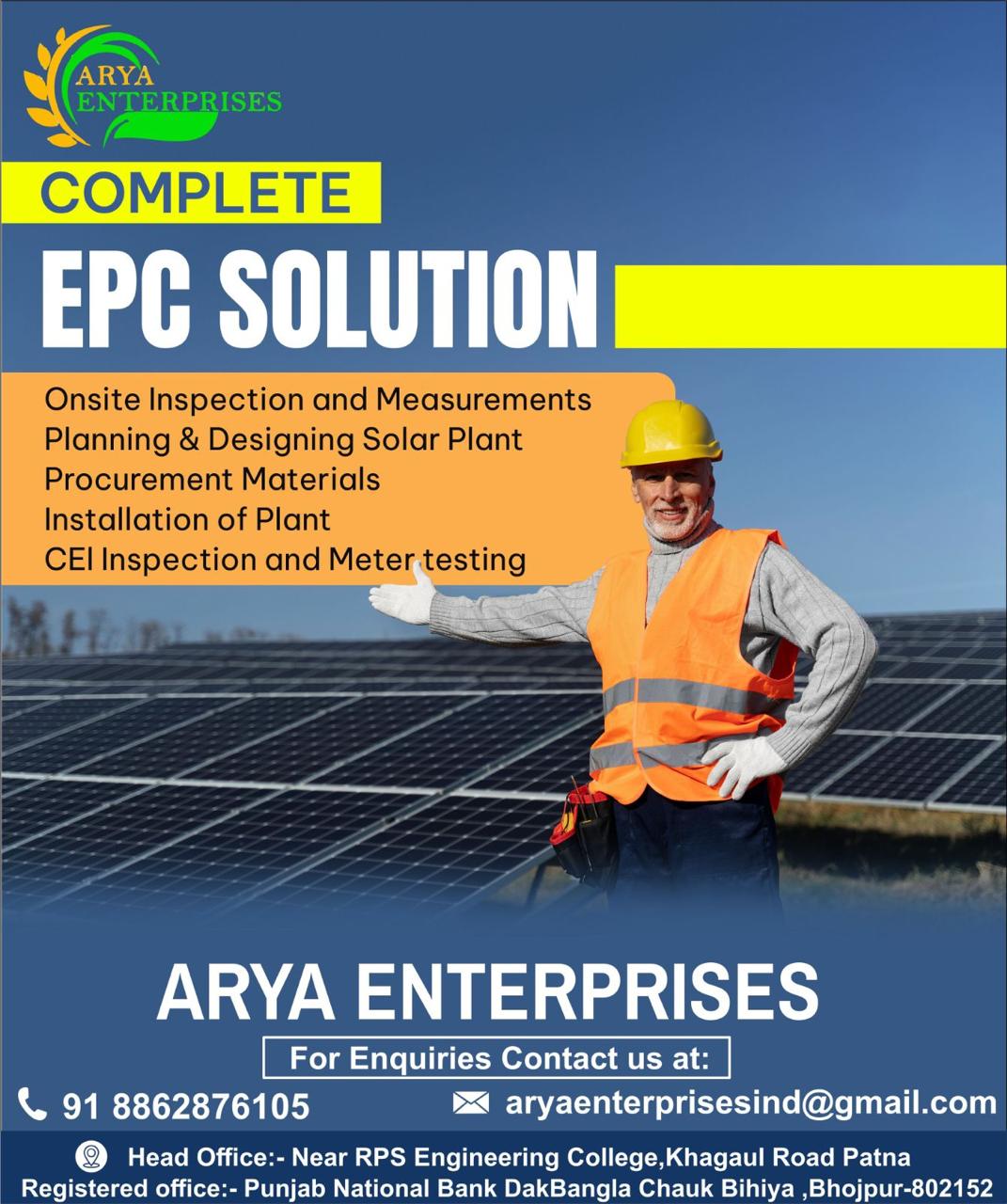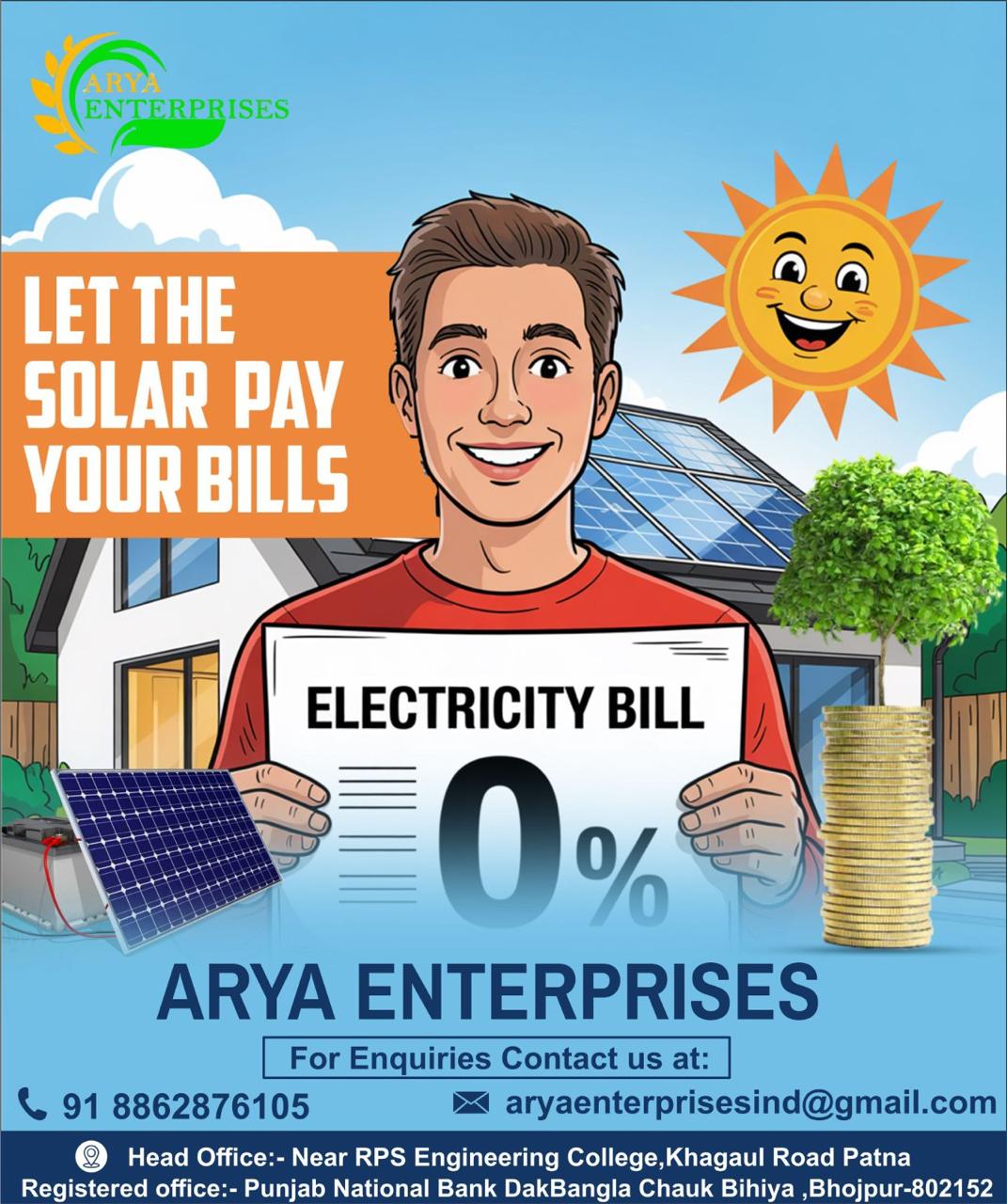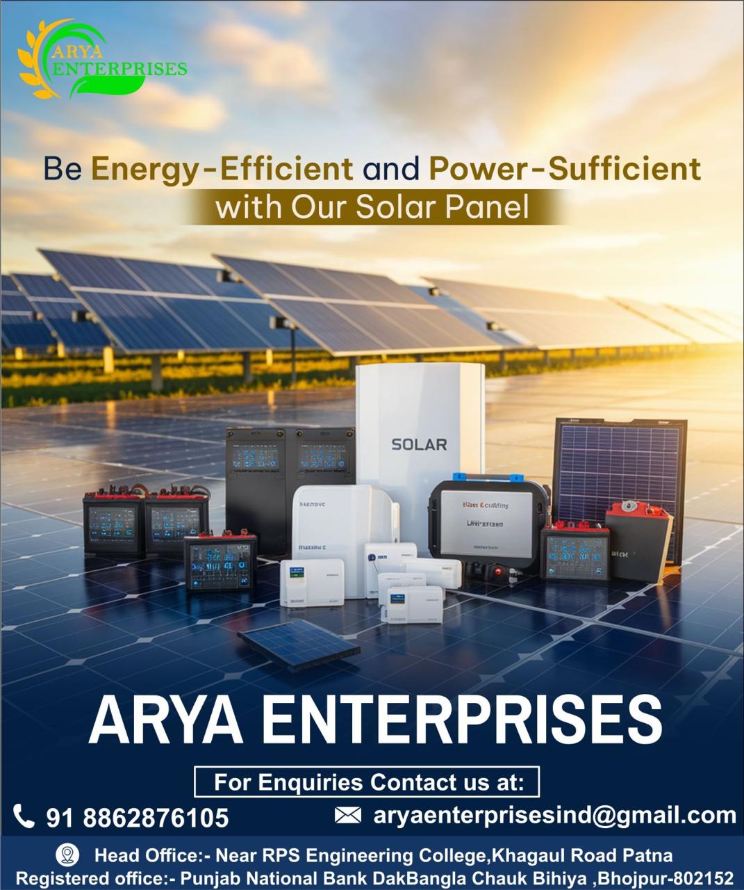 Contact ARYA ENTERPRISES today for a free consultation and take the first step towards energy independence and sustainability.